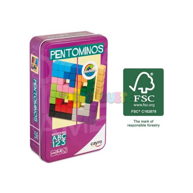 Los Pentominós son una forma especial de poliominós, que son figuras formadas por la unión de cuadrados idénticos a lo largo de sus lados. En el caso de los pentominós, cada figura está compuesta por exactamente cinco cuadrados adyacentes. Existe 12 piezas diferentes de pentominós, cada una con su propia forma única.Número de jugadores: 1Tiempo de juego: 15 min.Edad recomedada a partir de 5 años.