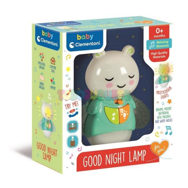Una dulce luciérnaga que emite suaves haces de luz y crea un ambiente relajante. Su sobresaliente diseño y funcionalidad ayudan a que el niño caiga en los brazos de Morfeo y permanezca dormido.Las luces y sonidos se han estudiado minuciosamente para formar parte de la rutina seguida para acostar al bebé. La música y la luz se vuelven una señal reconocible de que es hora de ir a dormir.Hacer que el bebé se duerma suele ser difícil, por lo que es vital que se calme y relaje para que no se sienta sobreestimulado y pueda caer en un sueño reparador que dure toda la noche.La luz tenue en el dormitorio tranquiliza y apacigua al bebé. También permite que la madre pueda entrar en la habitación y comprobar que el bebé está durmiendo sin tener que encender una luz brillante.Piezas clásicas y ruido blanco especialmente diseñado para tranquilizar y apaciguar a los bebés para que duerman. La secuencia de luces calma al niño y lo prepara para un sueño profundo y duradero.Con 2 interruptores de modo: melodías y secuencias de luces. El sistema de ilumiación que brilla en las partes transparentes, aporta al juguete una bonita estética y hace que la luciérnaga sea mágica.Concebido, diseñado y desarrollado en Italia.Objetivo de edad0+mTamaño de caja (AxPxA)20 x 22 x 8Peso327 grBaterías requeridasSIBaterias incluidas3 AAA/LR03
